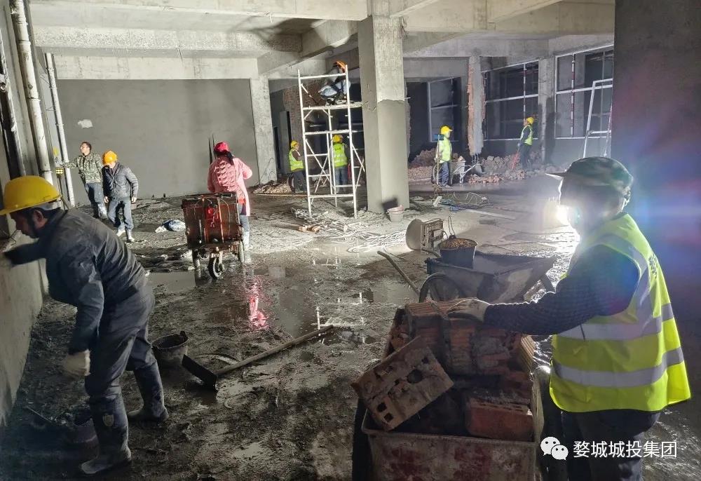 为了加快项目速度,缩短混凝土地面养护时间,尽可能为后续设备安装调试留出充足时间,项目负责人决定当天晚上进行地面细石混凝土施工。截至1月13日凌晨2时,区疾控中心5万管核酸检测基地3楼700余平细石混凝土找平层铺设完毕,墙体工程量完成20方。水建公司将铆足劲向更快更好完成交办任务发起冲刺。